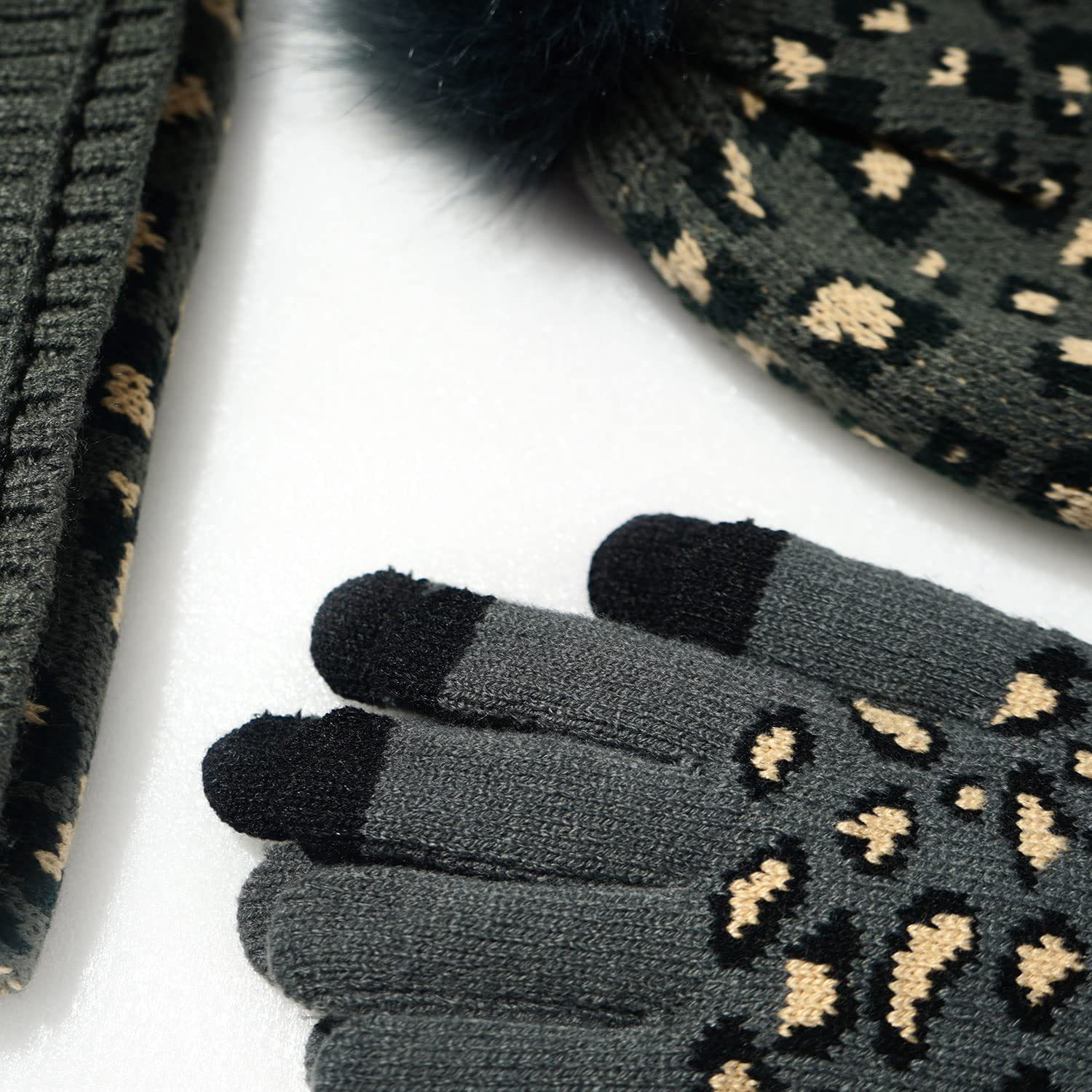 / 100% Acrylic Knit Animal Print Scarf, Beanie & Glove Set
