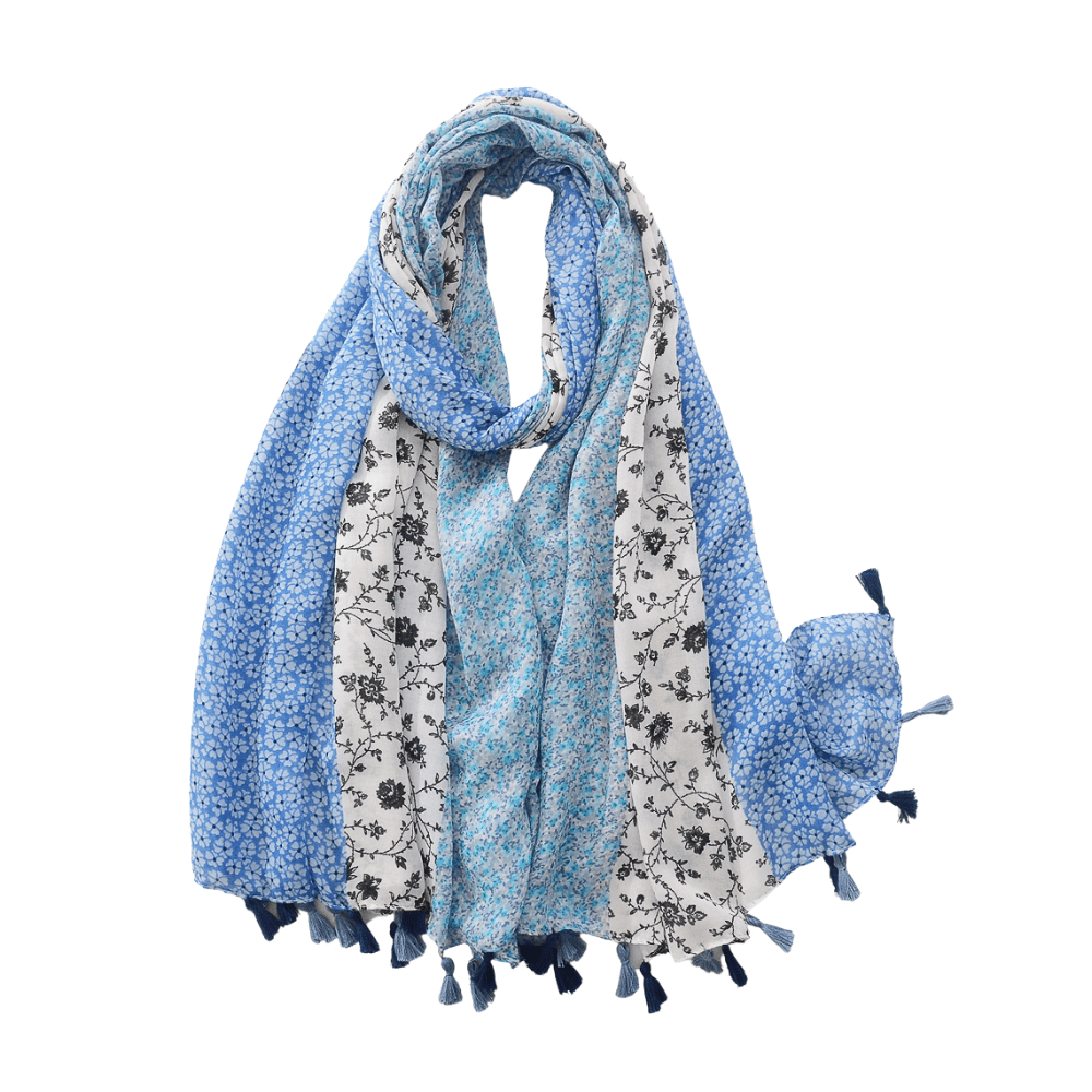 100% Polyester Print Fringe & Tassel Floral Scarf
