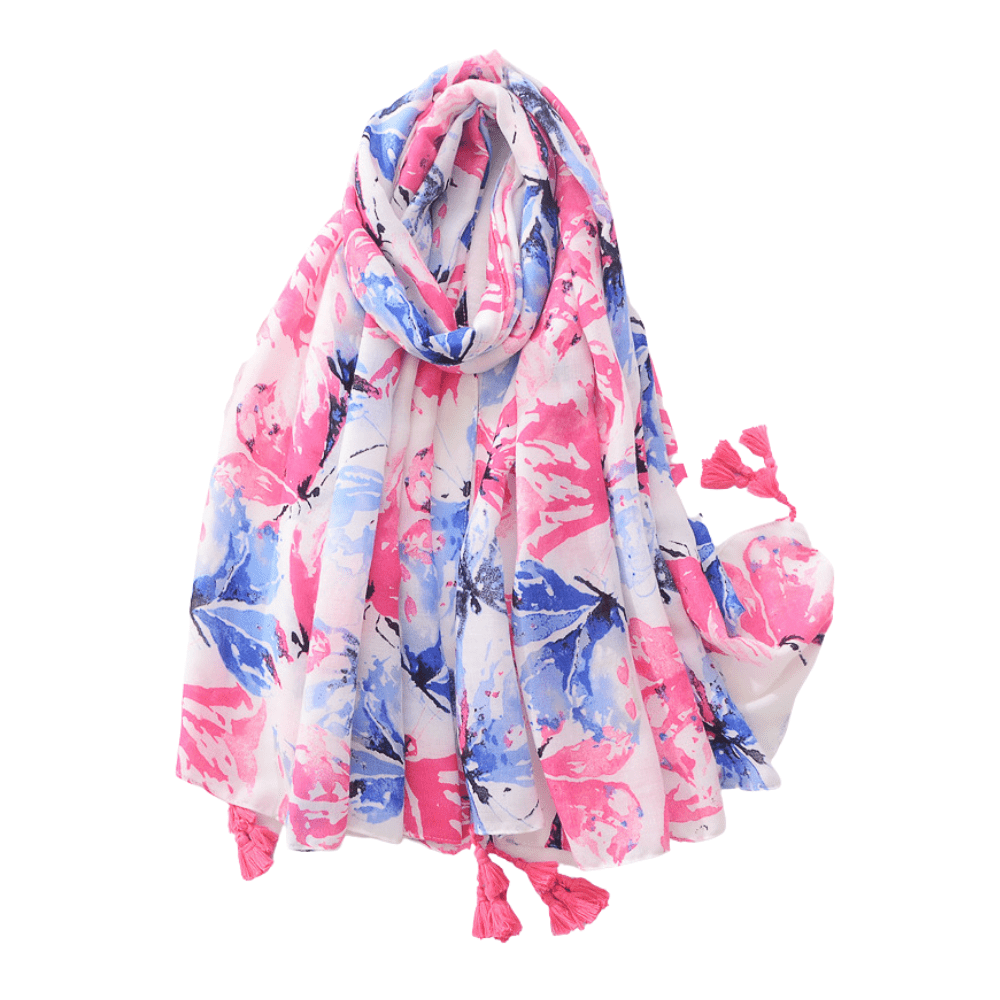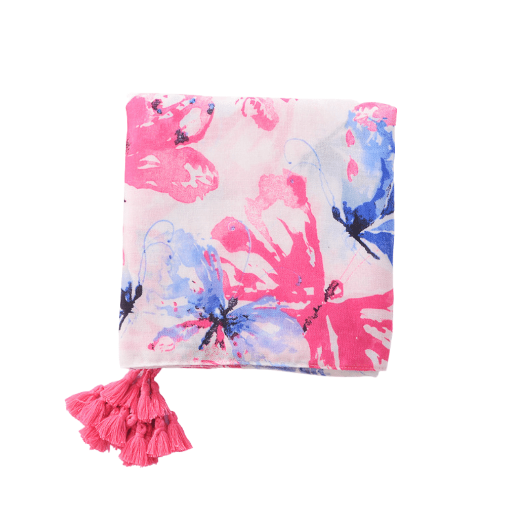 100% Polyester Print Fringe & Tassel Butterfly Design Scarf