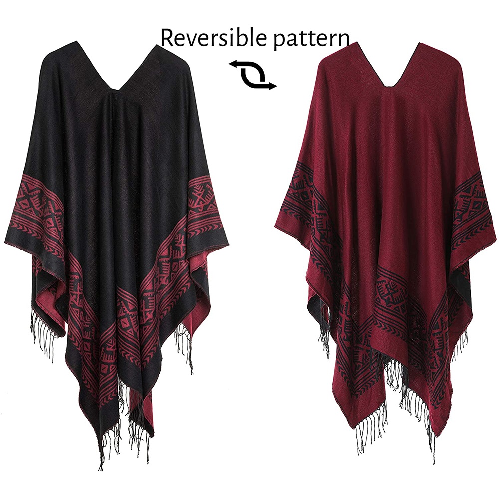 / 100% Acrylic Woven Reversible Poncho